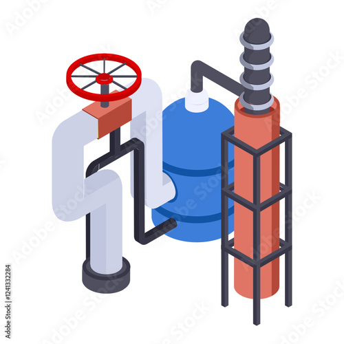 Fluid catalytic cracking isometric Concept, Steam reforming or biotreater Vector color Icon Design, Oil and Gas industry Symbol, Petroleum and gasoline Sign, Service and supply stock illustration