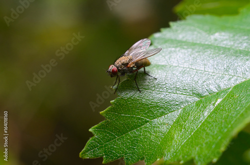 arbour, bug, bush, close, closeup, coniferous, creature, eye, fauna, flora, fly, foliage, gooseberry, green, hairy, hedge, house, housefly, insect, leaf, macro, nature, plant, privet, red, resting, shrub, sitting, stable, thuja, tree, up, vita, wildlife, yellow
