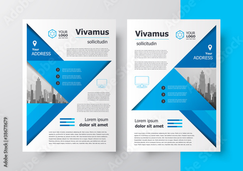 Flyer brochure design template set front and back, size A4 triangles theme blue color
