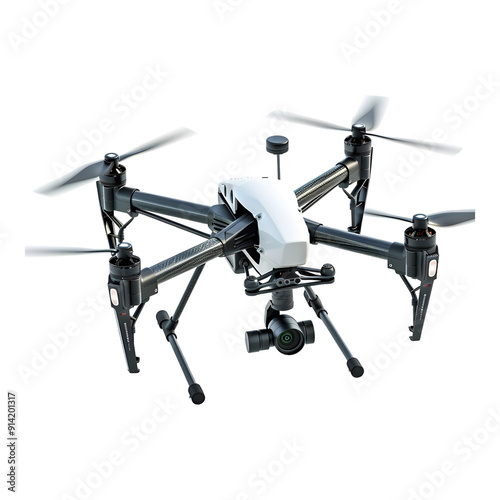 Flying drone with camera on vibrant transparent background high res 8K