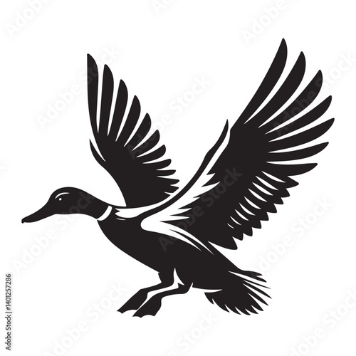 Flying Duck Vector Silhouette Illustration, Bird in Flight Artwork