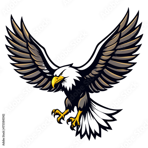 Flying Eagle Color full with Spread Wings – Powerful Bird Illustration.