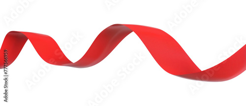 Flying simple red ribbon on transparent background