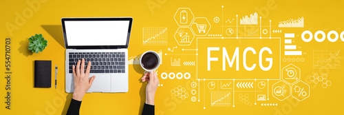 FMCG - Fast Moving Consumer Goods theme with person using a laptop computer