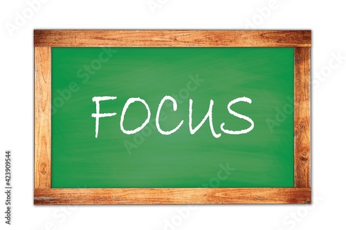 FOCUS text written on green school board.