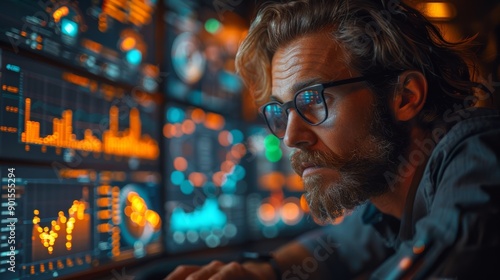 analyst, technology, evening light, graph, visualisation, concentration, trend, pattern, information technology, workspace, professional, dedicated, research, programming, statistic, software, computer, intelligence, career, job, computer science, creativity, generative, ai