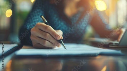 writing, pen, notepad, person, blurred background, warm light, sharpened, paper, hand, work, documentation, note, planning, office, professional, business, bokeh, closeup, desk, creativity, paperwork, brainstorming, concentration, detailed, executive, task, organizing, strategy, productivity