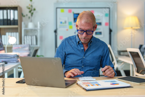 business, office, finance, accounting, calculating machine, laptop, senior, businessman, manager, work, working, analysing, analysis, financial, chart, graph, datum, performance, profit, strategy, planning, investment, economy, corporate, company, desk, computer, technology, workplace, professional, occupation, career, expertise, skill, growth, success, achievement, report, document, paperwork, organisation, efficiency, productivity, sharpened, concentration, determination, problem, solving