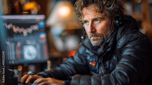 professional, analysis, computer, office, cosy, environment, technology, chart, graph, headset, concentration, work, productivity, atmosphere, individual, screen, discussion, engagement, research, investment, trader, strategy, business, sharpened, casual clothes, lighting, modern, workspace, tool, communication, attire, performance, desk, laptop, statistic, creativity, industry, success, generative, ai