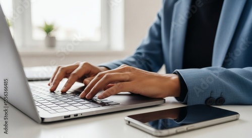Focused Professional Typing on Laptop, Modern Workplace Productivity