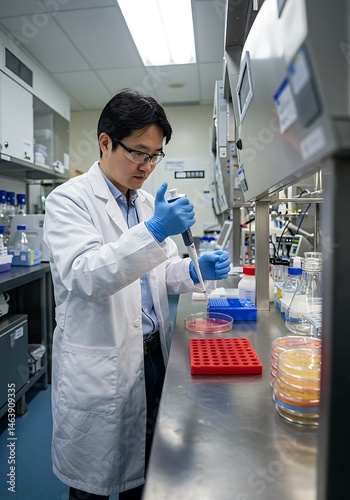 laboratory, scientist, research, science, experiment, labcoat, glove, pipette, glassware, equipment, biology, chemistry, analysis, testing, researcher, technology, medicals, health care, solution
