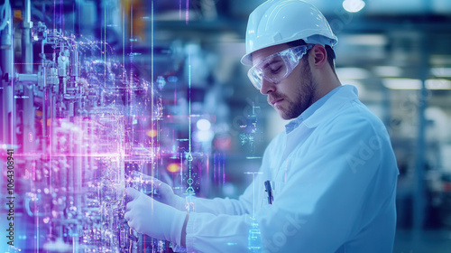 technician, laboratory, machinery, technology, innovation, safety, gear, laboratory, coat, industrial, electronic, engineering, male, working, modern, digital, futuristic, precision, equipment, research, science, professional, skilled, development