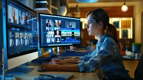 sharpened, woman, work, video, edit, project, dark, room, type, keyboard, look, screen, computer, technology, young, professional, creator, task, concentration, diligent, editor, visual, audio, multimedia, software, production, creative, employment, occupation, graphic, design, monitor, deadline, workstation, laptop, freelancer, career, cyberspace, studio, industry, entrepreneur, creation, entrepreneurship, motion, social, publish, effect, entrepreneurial