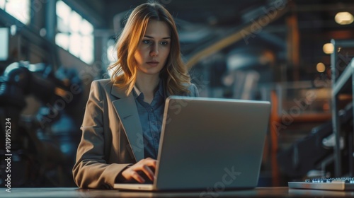 Focused Woman Working on Laptop in Office