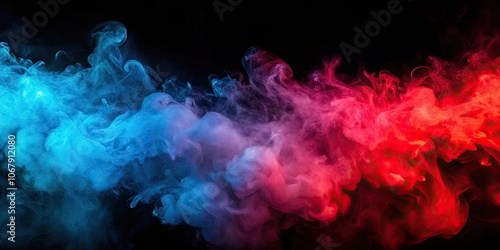 Fog in red blue neon light on black background, fog, red, blue, neon, light, black, background, atmospheric, mysterious, surreal