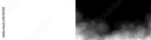 fog, smoke, translucent element for decoration. below white clouds, haze, on a transparent and black background