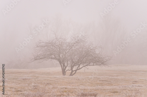 Foggy scenery in a remote rural area in winter