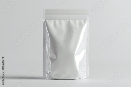 Foil Pouch Mockup With Seal, Food Package Blank On White Background, Clean Style