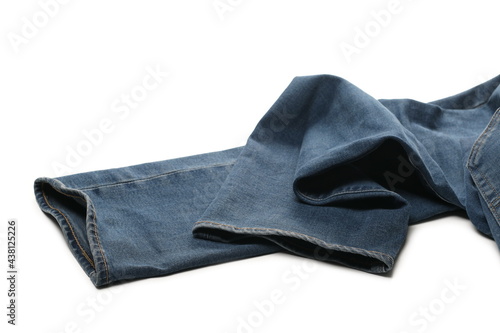 Folded blue jeans pair isolated on white background