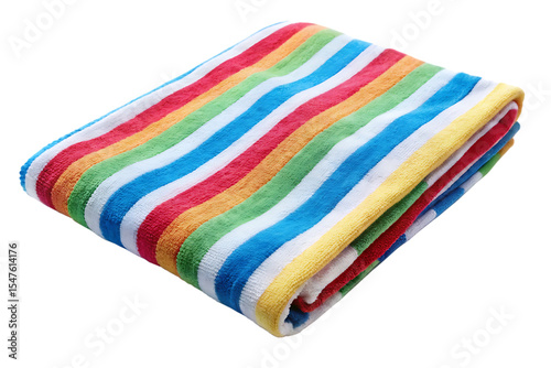 Folded Rainbow Striped Beach Towel Colorful Summer Stripes Soft Texture Fabric Textile A I G E N E R A T E D - P N G isolated on a transparent background