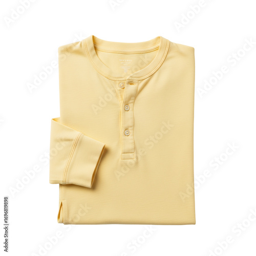 Folded Yellow Henley Shirt Flat Lay Stock Photo Casual Wear Fashion Apparel Clothing Concept