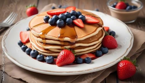 battercake, berry, food, breakfast, blueberry, fruit, dessert, sirup, meal, stack, homemade, sweet, delicious, plate, strawberry, healthy, morning, white, fresh, baked, pile, closeup, cake, maple, leaf, tasty, snack, pastry, sauce, mint, red, wooden, closeup