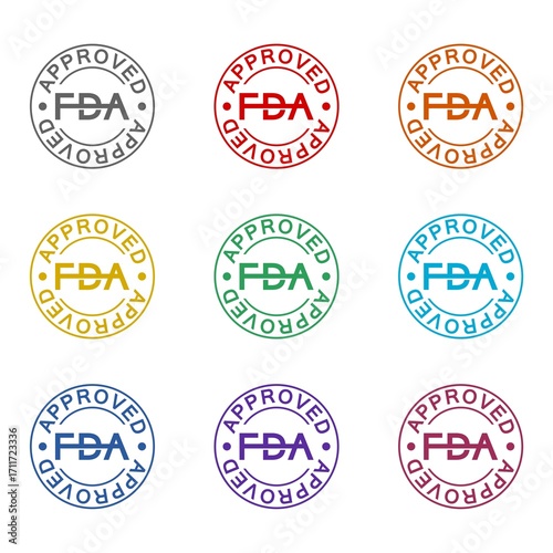 Food and Drug Administration FDA approved icon isolated on white background. Set icons colorful