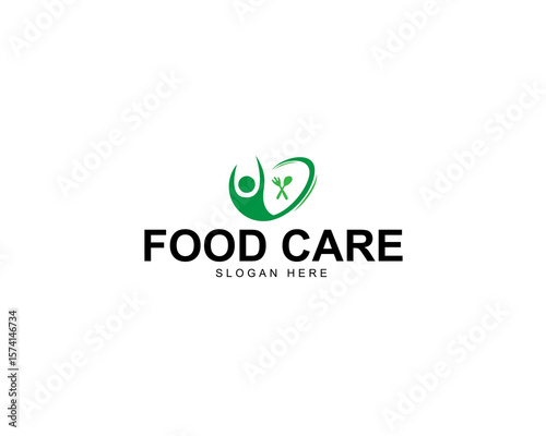Food Care Logo, People with Fork and Spoon Logo and Heart Concept