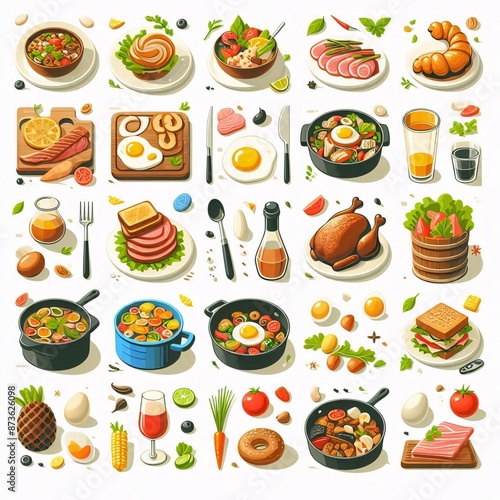 food, illustration, white, background, vector, delicious, meal, receipe, ingredient, cookbook, website, menu, kitchen, cooking, healthy, presentation, variety, international, culture, cookery, dietary, vegetarian, vegan