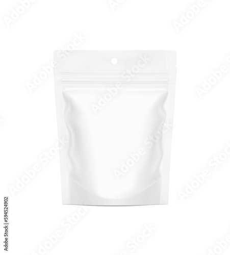 Food pouch stand up bag mockup. Vector illustration isolated on white background. Front view. Can be use for template your design, presentation, promo, ad. EPS10.