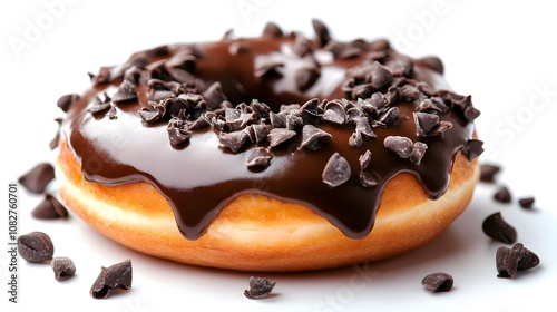 Food, Sweet Dish, Chocolate Doughnut, on White Background, Photo Realistic, Wallpaper, Cover and Screen of Smartphone, PC, Laptop, 9:16 and 16:9 Format