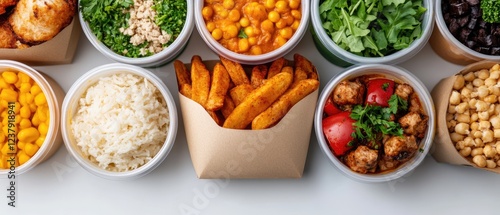 Food truck feast delicious meal options urban street fair culinary experience outdoor dining aerial view gourmet flavor adventure