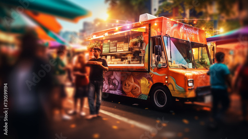 Food truck festival in the city, selective focus, photo shoot