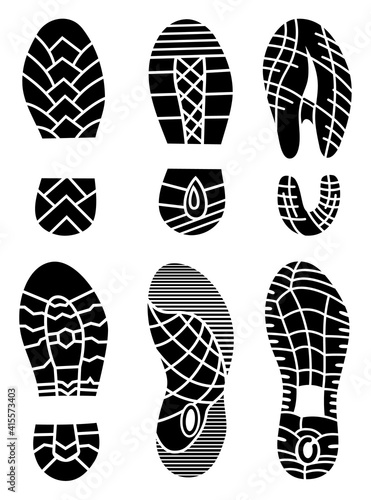 Footprint icons isolated on white background. art. Collection of a imprint soles shoes. Footprint sport shoes big illustration set