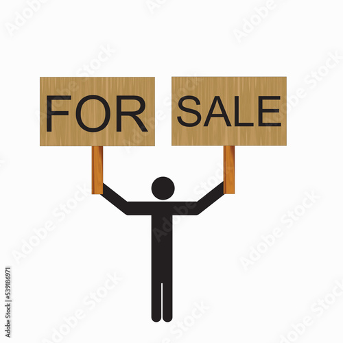 business, three-dimensional, concept, businessman, people, signs, person, success, symbol, text, idea, character, job, guy, word, icon, cartoon, render, web, illustration, communication, cyberspace, design, work, hand, for sale