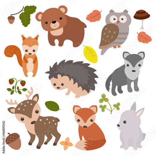 forest, animal, cute, collection, cartoon, comic, graphic, adorable, childhood, baby, character, element, illustration, funny, design, children, children, object, friendly, cheerful, zoo, isolated, natural, fun, mammal, symbol, nature, wildlife, fauna, joy, mascot, wild, young, white, life, set, group, hare, wolf, raccoon, beaver, bear, cervid, bird, leaf, berry, mushroom, squirrel