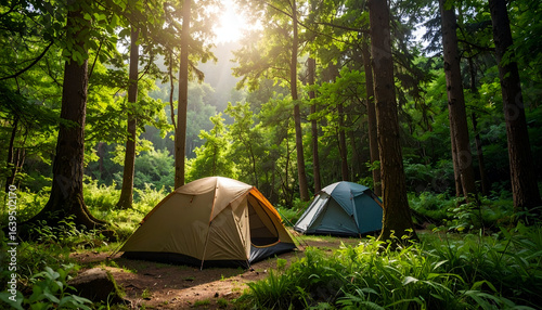 camping, tent, tent, forest, wood, tree, nature, outdoors, adventure, travel, backpacking, sunrise, sunlight, summer, green, peaceful, serene, calm, relaxation, wilderness, escape, holiday, vacation, exploration, landscape, scenery, environment, ecology, ecosystem, hiking, trekking, tour tourism, recreation, leisure