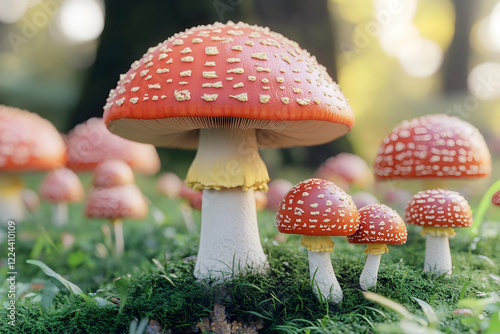 mushroom, mushroom, forest, nature, fungal, red, toadstool, flocked, moss, sunlight, green, plant, ecology, botany, biology, wildlife, timberland, outdoors, environment, background, texture, image, design, illustration, photo, graphic, art, vibrant, colourful, magical, fairy tale, beauty, scenic, summer, autumn, spring, earthy, organic, healthy, growth, life, wild, scene, detail, macro, closeup, delicate, fantasy