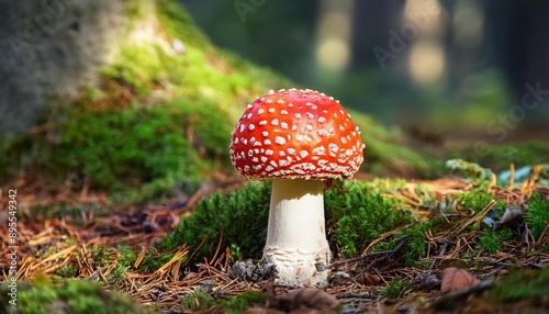 Forest Intrigue: Red Poison Mushroom Amidst the Trees