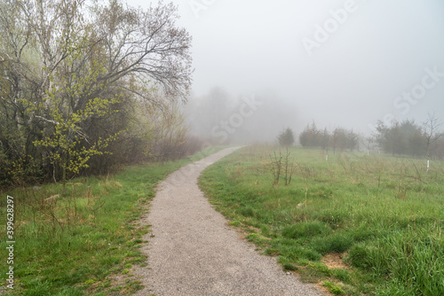 fog, bush, day, forest, growth, landscape, mist, nature, nobody, outdoors, path, pathway, plant, rain, rainy, rough, tree, wet, white, wood