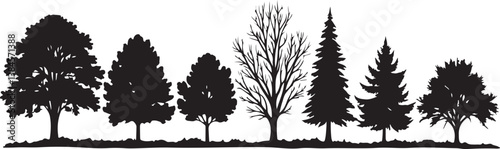 Forest Tree Silhouette Border | Woodland Tree Line Vector"