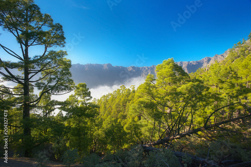 Forest with pines Pinus canariensis in Caldera of Taburiente, La Palma, Canary Islands