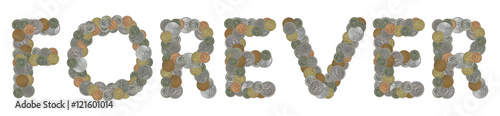 coin, old, forever, alphabet, typescript, typing, finance, banking, wealth, income, cost, business, economy, money, currency, bill, shape, message, advice, sale, selling, paying, buying, investment, white background, cut-out, no people, rate, idea, concept