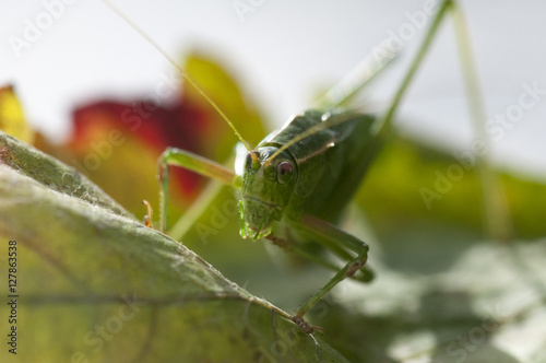 bug, feeding, flower, grasshopper, leaf, leaf, leg