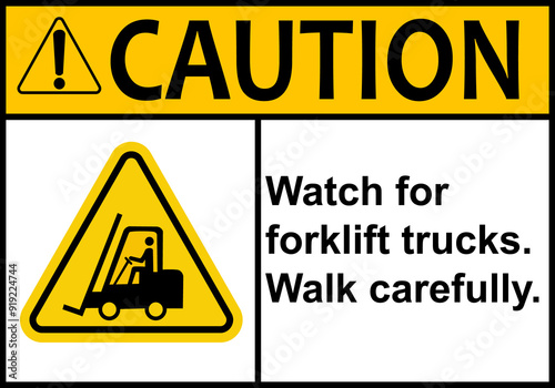 Forklift sign. Forklift traffic zones in industrial and warehouse areas. Loading and unloading at transport terminals and construction sites. Lifting and moving heavy loads. Forklift warning.