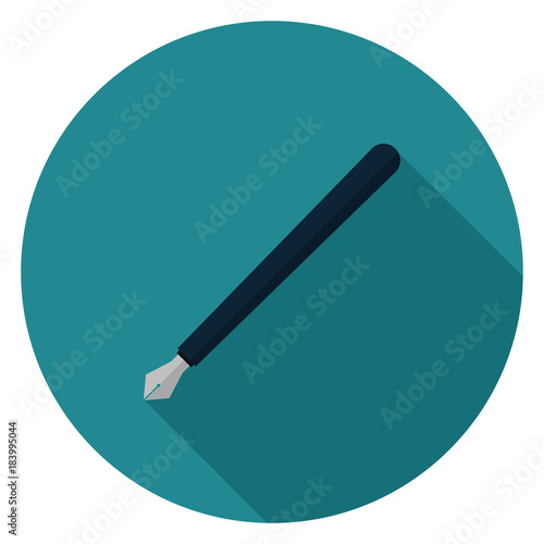 Fountain pen icon. Illustration in flat style. Round icon with long shadow.