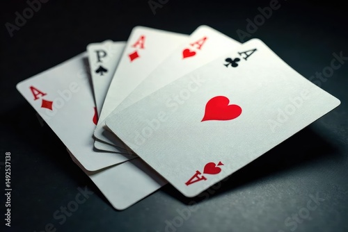 Four aces fanned out, showcasing a distinct pattern , diamonds, four of a kind