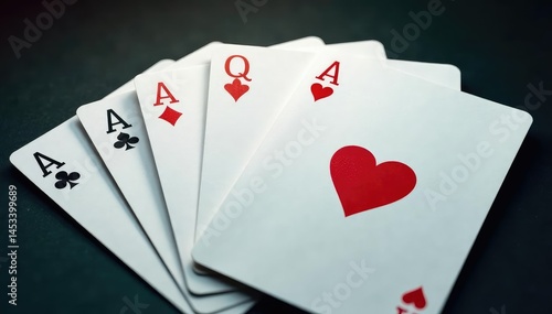 Four aces fanned out, showcasing the suit symbols , fan, four of a kind