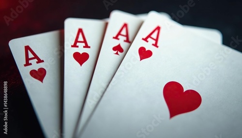 Four aces fanned out, showcasing their intricate details , cards, detail