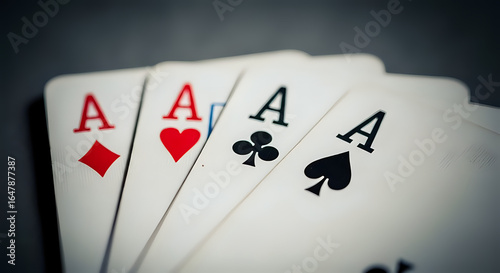 Four Aces playing cards held in hand, representing luck, success, and winning opportunities in games and business